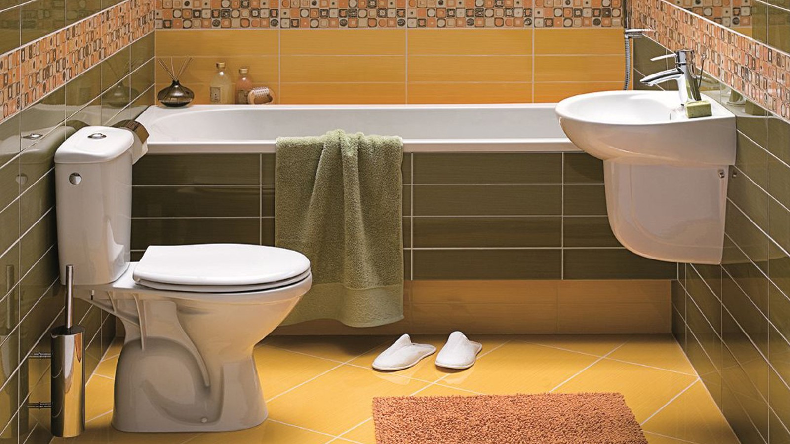 Під час вибору настінної та підлогової плитки важливо відмовитися від надмірно темних, насичених і контрастних елементів, надавши перевагу м’яким пастельним відтінкам. Саме ніжні світлі фонові тони дають можливість позбутися відчуття обмеженого об’єму.